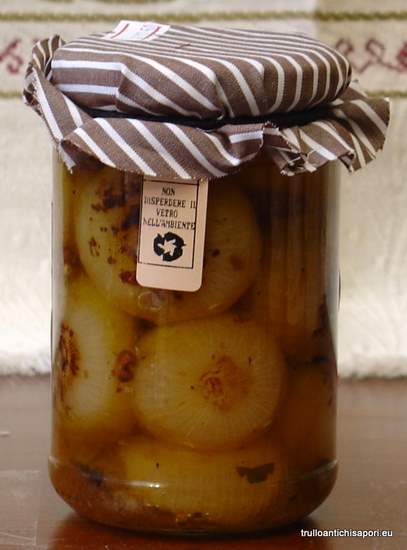Cipolle Arrostiti Cipolle tipo Barlettano, prima acidificate in aceto di vino , poi arrostite e infine conservati in solo Olio extra vergine d'oliva estratto a freddo. Produzione locale e artigianale Vasetto da 300 gr.