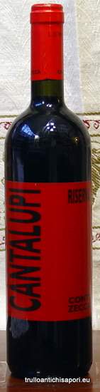 Cantalupi, salice salentino D.O.C. Riserva Azienda:Conti Zecca Annata : 2003 Gradazione alcolica: 13 % VOL Uve: negroamaro e malvasia nera Colore: Rosso Profumo: Aroma di piccoli frutti rossi e di spezie Gusto: Morbido ed armonico. Corpo ricco e ben strutturato. Finale persistente Bottiglia da 75 cl